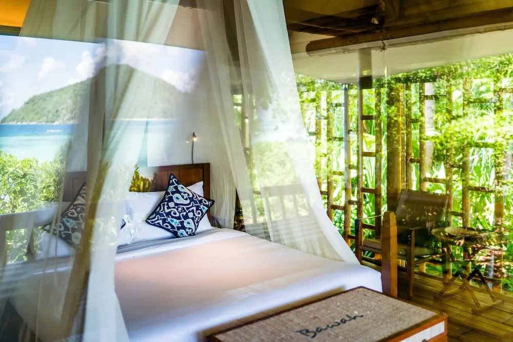 Das atemberaubende Bawah-Reservat liegt in geschützter Abgeschiedenheit 160 Seemeilen (300 km) nordöstlich von Singapur im abgelegenen Anambas-Archipel, Indonesien. Die Unterkünfte sind luxuriös und gut ausgestattet und bestehen aus Zeltsuiten, Überwasser-Bungalows, Pool-Villen und einer Baumhaus-Lodge. Alle Unterkünfte verfügen über Klimaanlage, Wi-Fi und ein eigenes Bad. Die Poolvillen bieten zusätzlich einen Essbereich, eine Sitzecke und einen Swimmingpool. Die Gäste können ihre Mahlzeiten in einzigartigen Restaurants genießen, die indonesische und mediterran inspirierte Küche in einer kreativen Verschmelzung von Ost und West servieren. Die talentierten Mixologen an der Bar haben ein Menü klassischer und tropischer Cocktails zusammengestellt, die mit Zutaten wie frischem Zitronengras, Chili, Pandanblättern und rosa Pfefferkörnern verblüffen. Zu den vom Resort angebotenen Aktivitäten gehören Tauchen, Segeln, Bootsausflüge, Kajakfahren und Strandspiele.