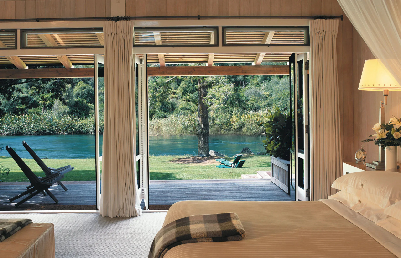 Eine tolle Unterkunft für Reisende, die nach Urlaub ohne Nachbarn suchen! Landhaus «Huka Lodge» befindet sich in Taupo. Dieses Landhaus befindet sich in 4 km vom Stadtzentrum.